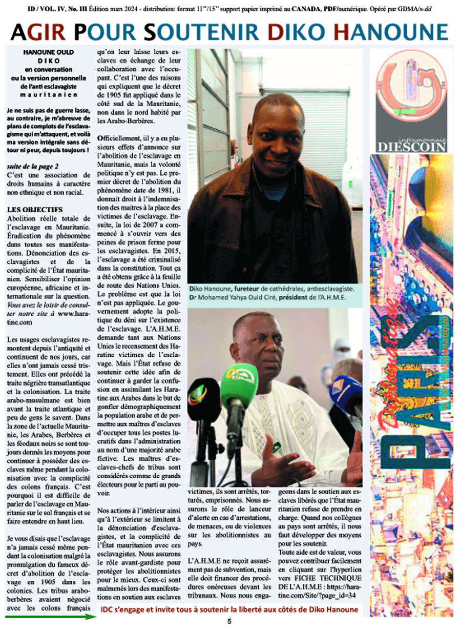 id03mars2024P5 Published March 26, 2024 at 900 × 1229 in Diko Hanoune en conversation ou la version personnelle de l’antiesclavagiste mauritanien ← Previous P5