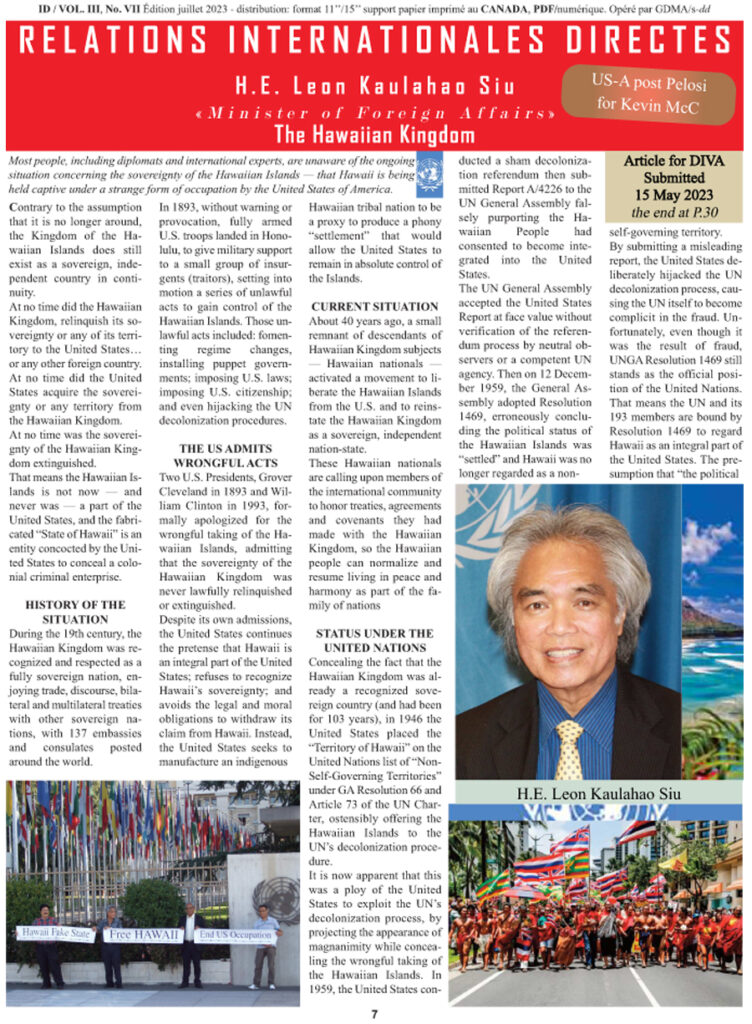 - Email: ForeignAffairs@HawaiianKingdom.net
