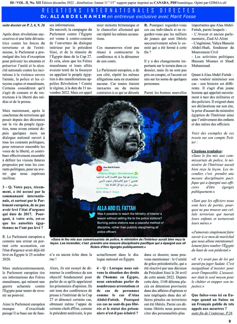 id12dec2022P9 Published December 4, 2022 at 900 × 1227 in Dr Abdelrahim Ali EXPOSE en entrevue ALLA ABD EL FATTAH avec Marit Fosse ← Previous Next →