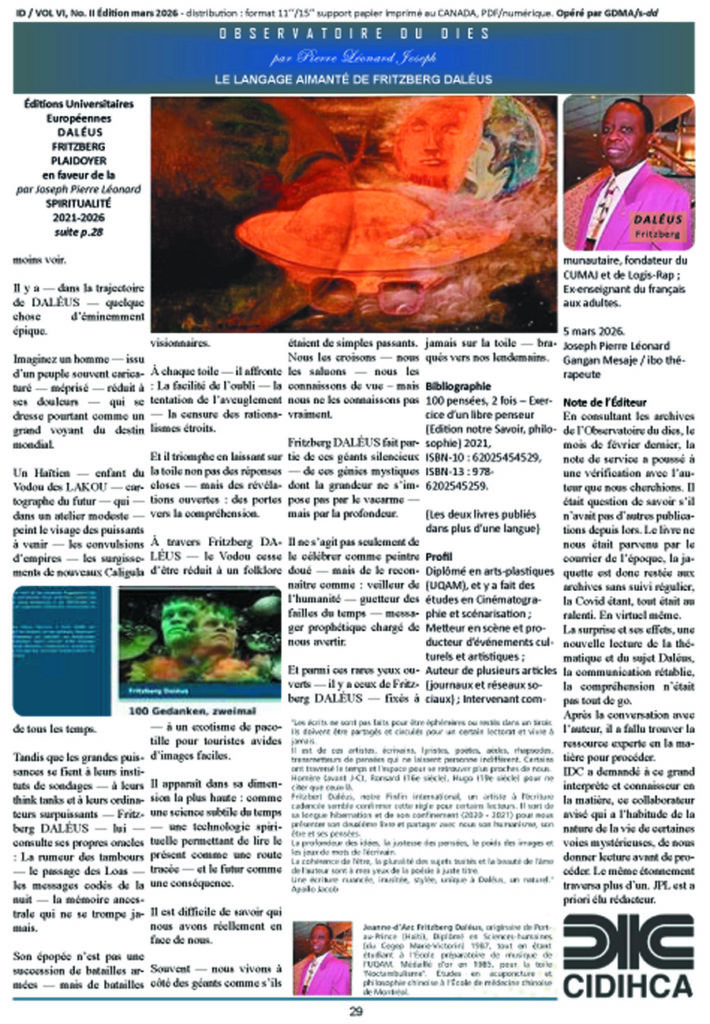 À travers Fritzberg DALÉUS — le Vodou cesse d’être réduit à un folklore — à un exotisme de pacotille pour touristes avides d’images faciles.