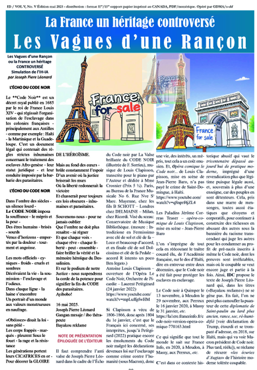 Edition sdd mai2025 P28 Published May 19, 2025 at 900 × 1297 in Les Vagues d’une Rançon ou la France un héritage CONTROVERSE par Joseph Piere Léonard – IH P28