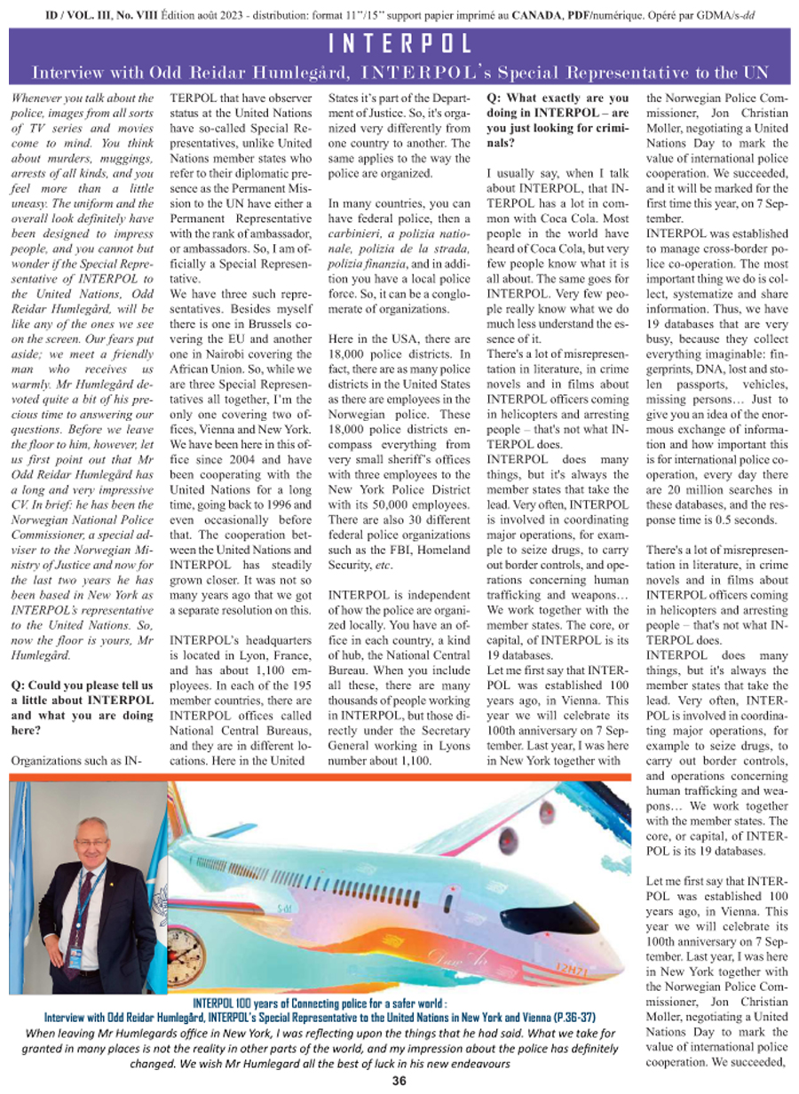 idaout2023P36 Published August 15, 2023 at 900 × 1232 in INTERPOL 100 years of Connecting police for a safer world: interview with Odd Reidar Humlegård ← Previous Next → P36