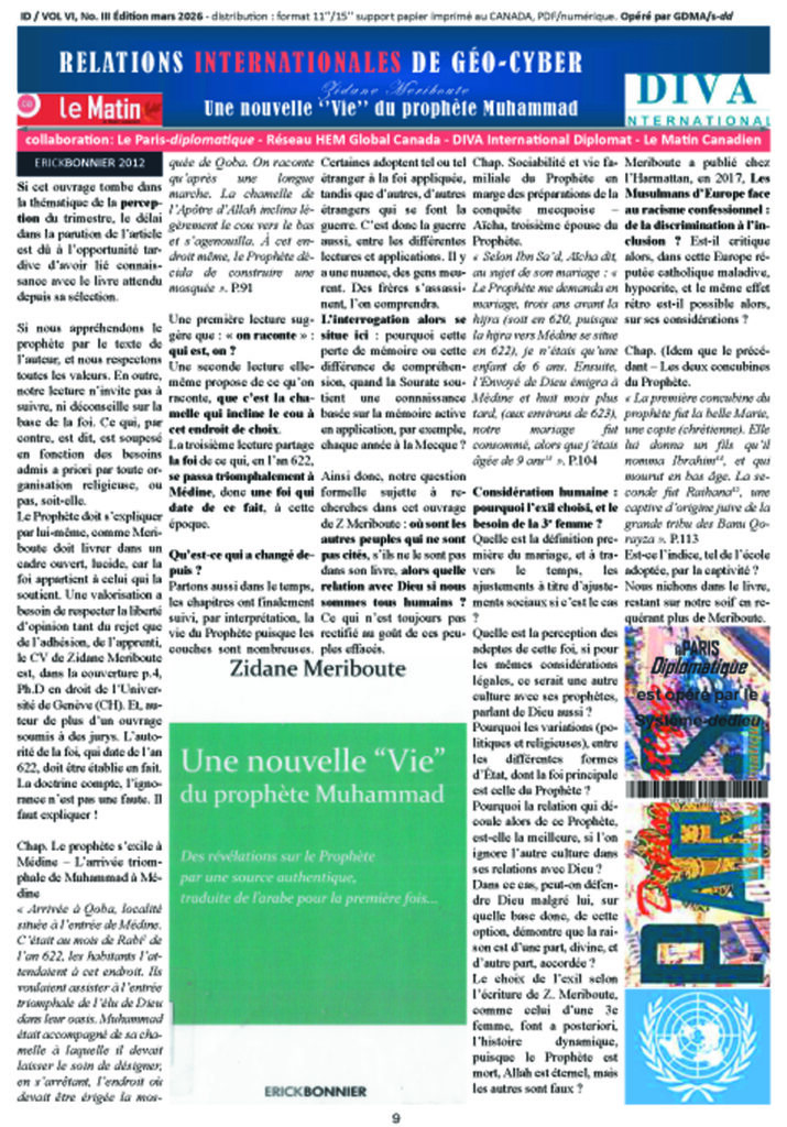 Le Prophète doit s’expliquer par lui-même, comme Meriboute doit livrer dans un cadre ouvert, lucide, car la foi appartient à celui qui la soutient. Une valorisation a besoin de respecter la liberté d’opinion tant du rejet que de l’adhésion, de l’apprenti, le CV de Zidane Meriboute est, dans la couverture p.4, Ph.D en droit de l’Université de Genève (CH). Et, auteur de plus d’un ouvrage soumis à des jurys. L’autorité de la foi, qui date de l’an 622, doit être établie en fait. La doctrine compte, l’ignorance n’est pas une faute. Il faut expliquer !